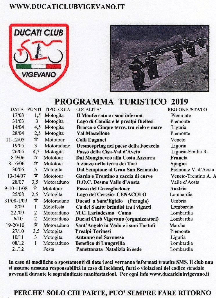 Home Page | Album Storico | Album 2019 | Chi siamo Contatti | Ritrovo | Tesseramento Regolamento | Convenzioni | Comunicazioni ai soci | Meteo-Siti Amici | Vita da soci | Programma Turistico 2019 | Campionato Turismo Fedeltą | Mappa del sito